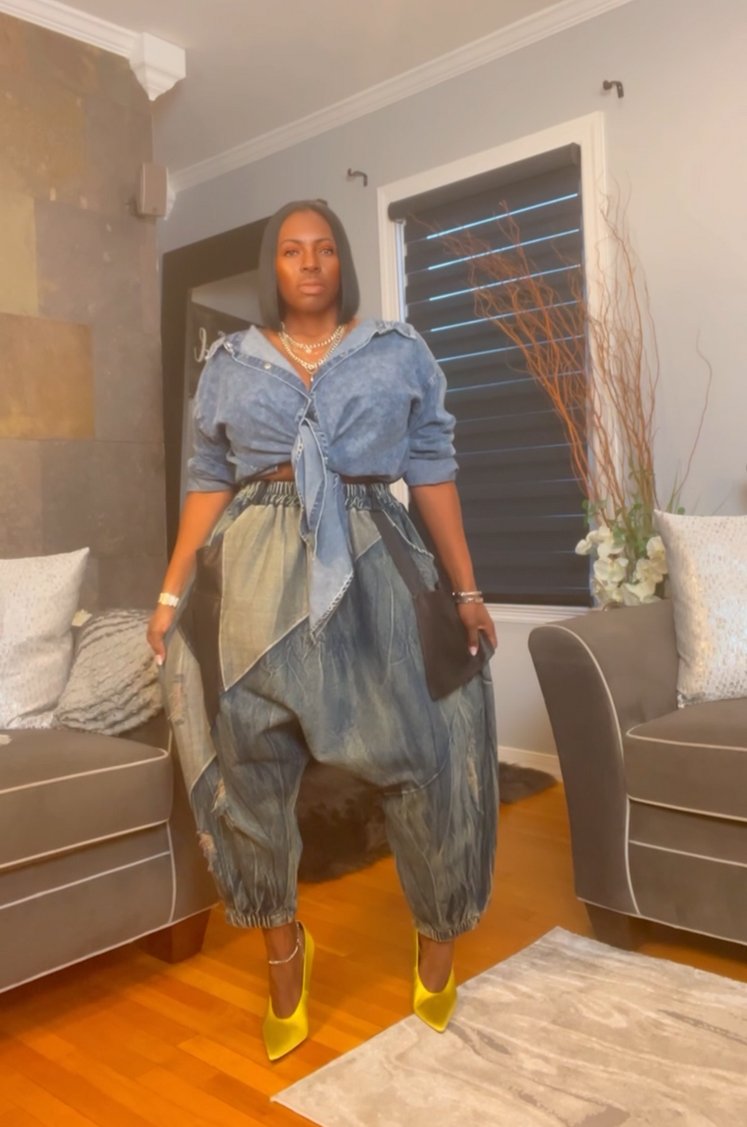 The "Amoura" Denim Oversized Harem Joggers | Pre-Order - Ships Between January 15th - January 30th