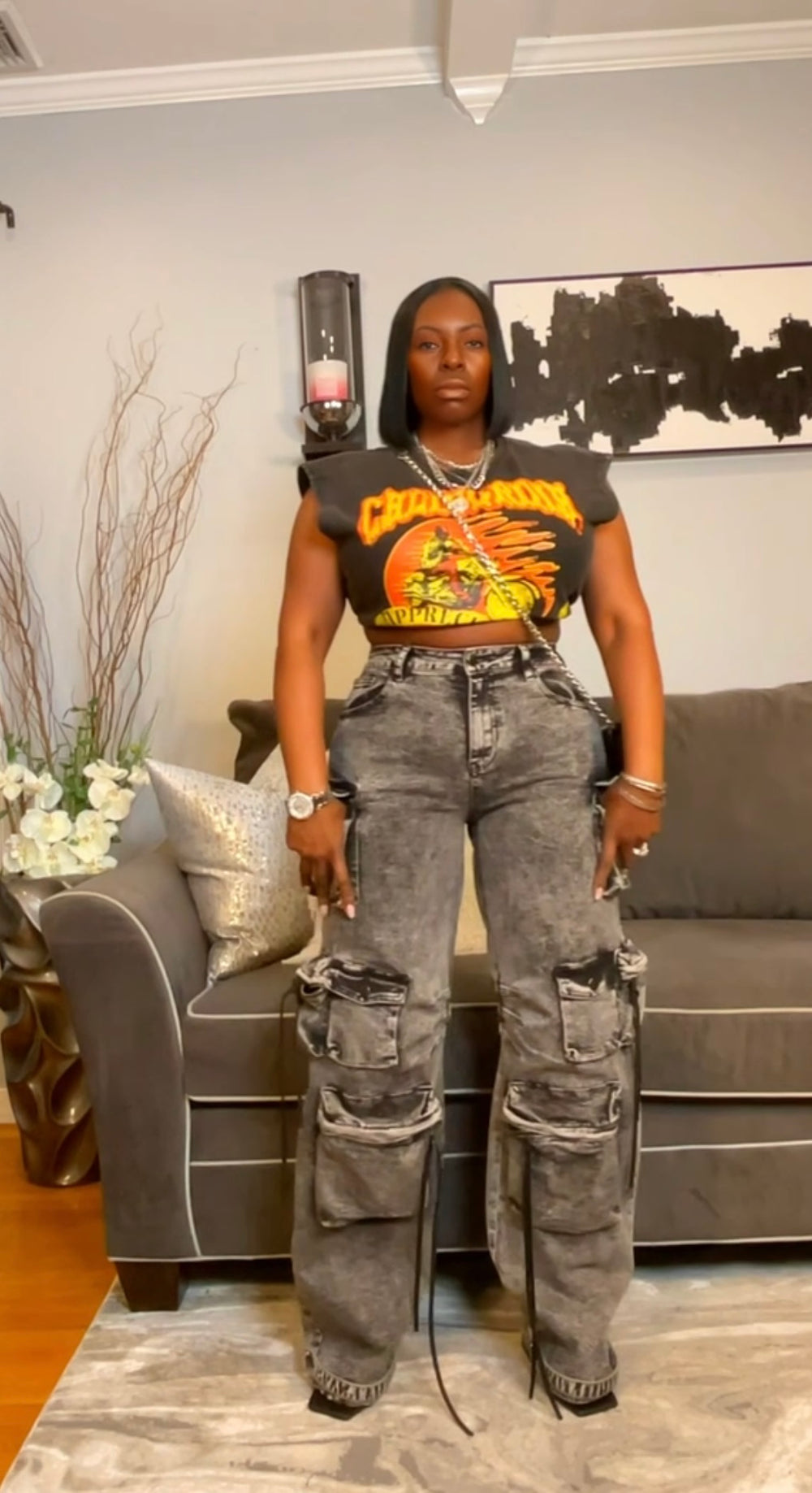 The "Kahlina" Tactical Cargo Jeans in Charcoal | Ready to Ship