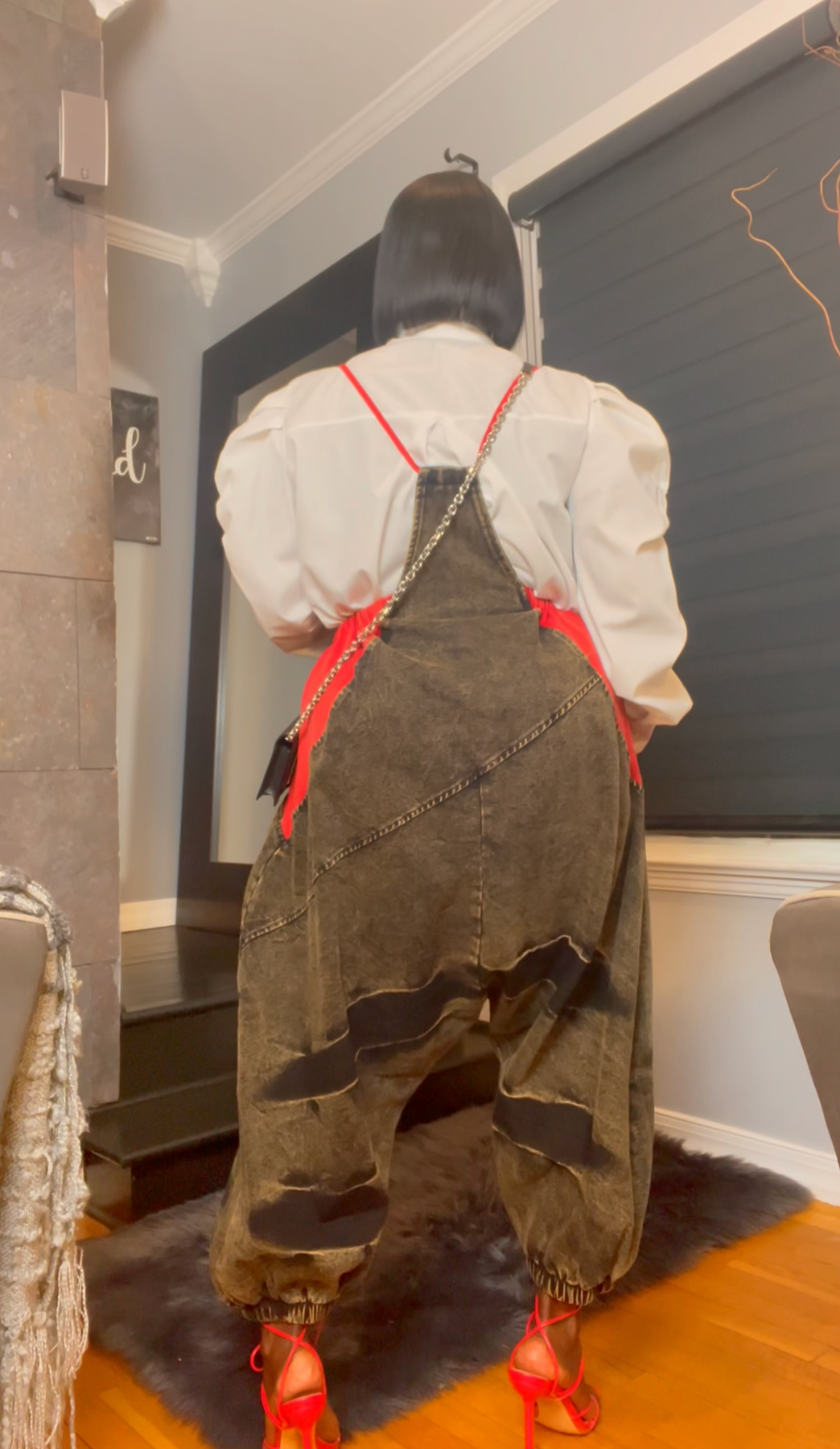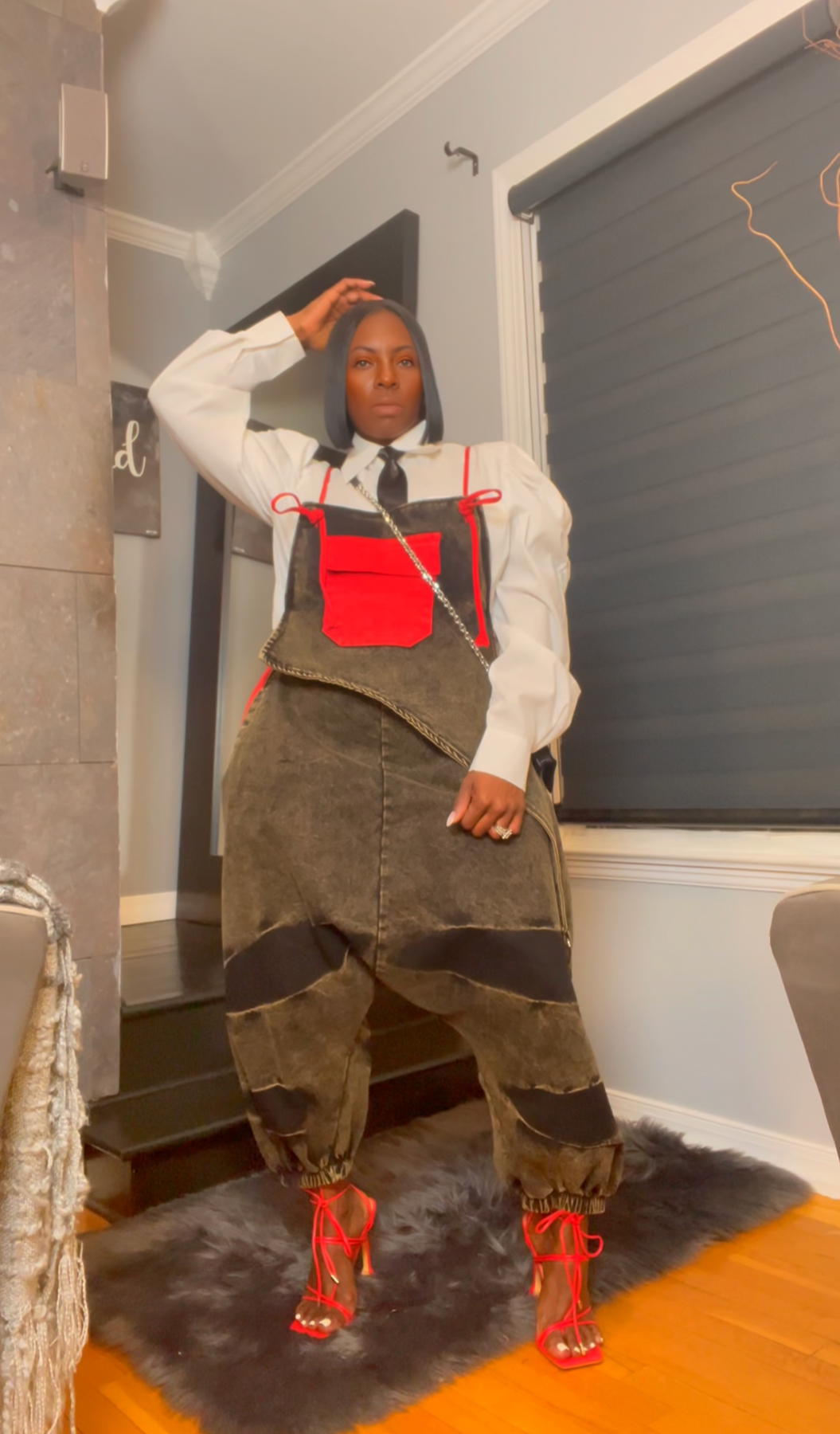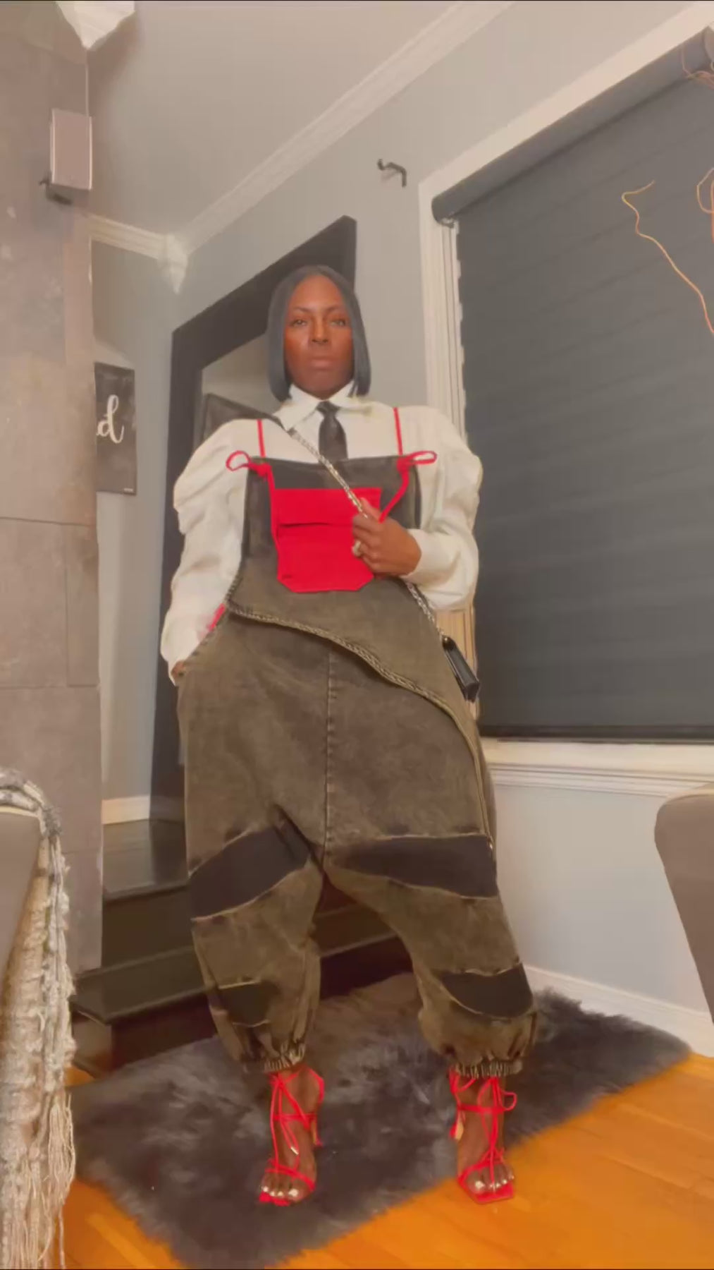 When bold meets streetwear—Zamirah in red shuts it down. This slouchy denim jumper fuses edgy design with confident flair, featuring an apron-style front pocket, deep wash finish, and exaggerated drop-crotch silhouette that’s pure attitude. ❤️🔥